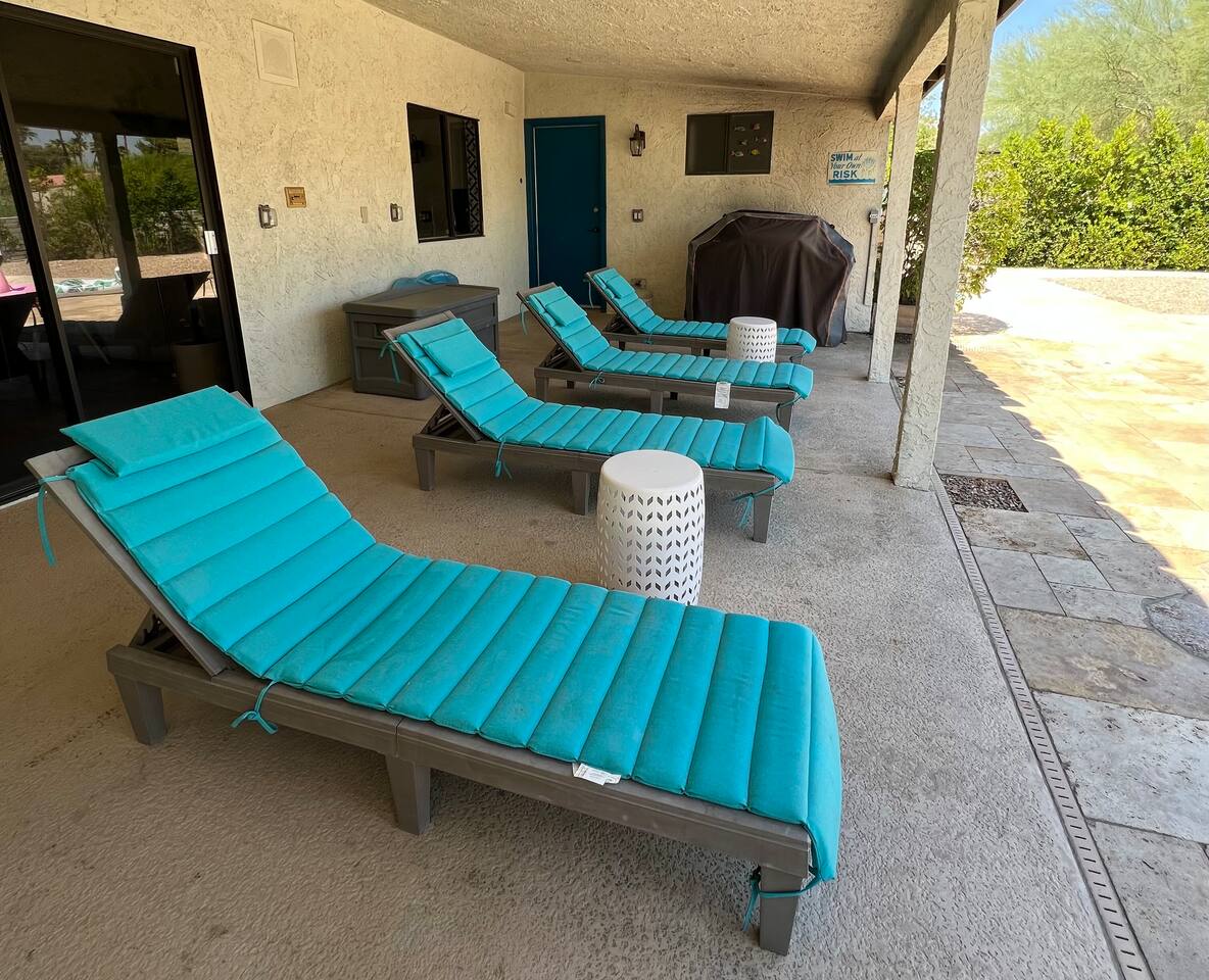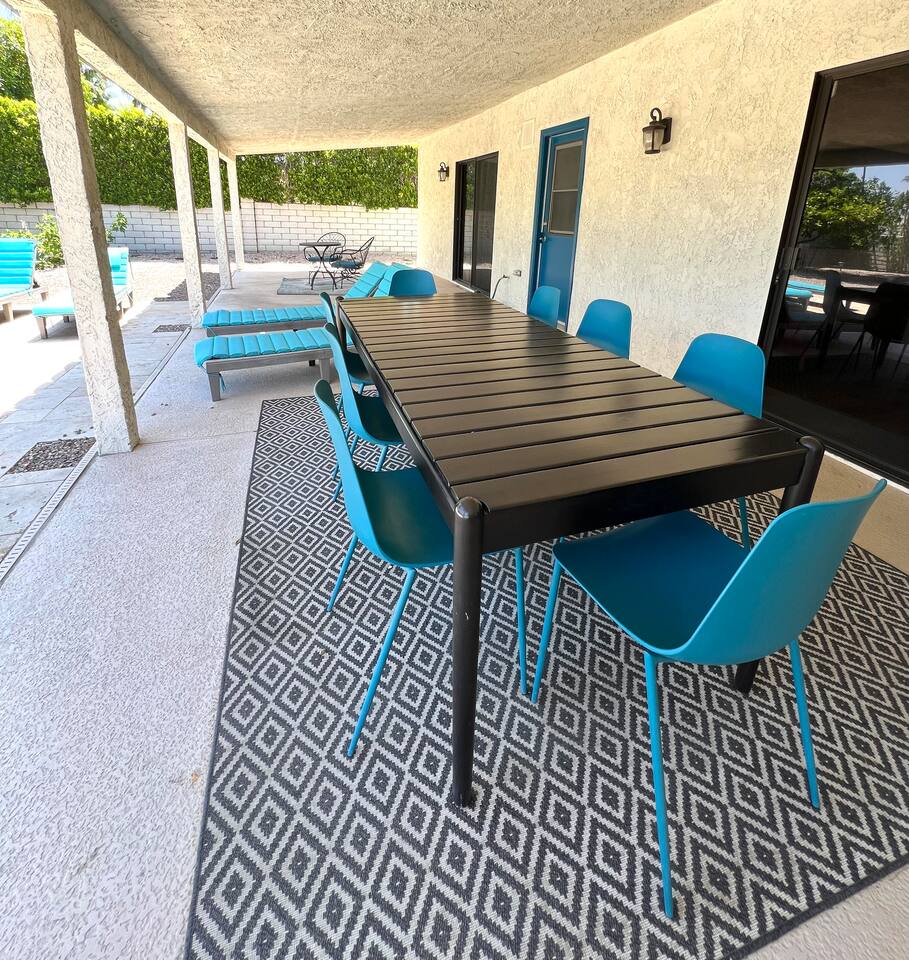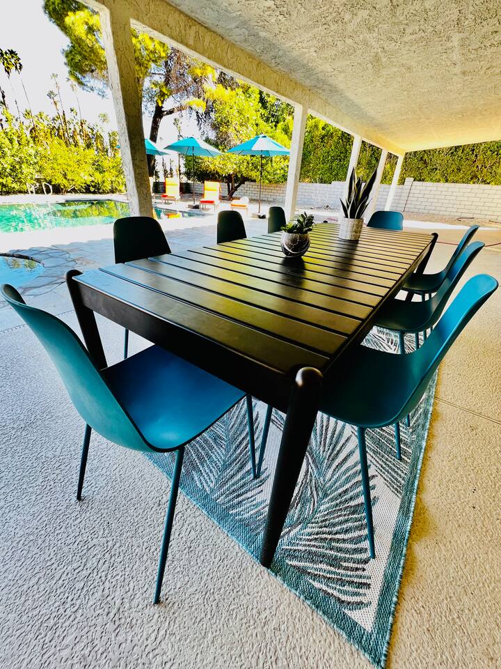 Per Palm Springs Short-Term Vacation Rental Ordinance. No sound amplifying devices (Speakers) may be used outside, if used inside noise shall not be heard from outside the property. The use of outdoor amenities and/or outdoor games or any outdoor activities that create noise between the hours of 9:00pm and 8.00am is prohibited. We have a security camera in front of the house and also near the side entrance to the yard. We also have a Noise Detection device in the backyard. This will not record audio, this noise detection device only triggers at Decibel levels above thresholds set. Removing or unplugging of devices are subject to $1000 fine and eviction. The minimum rental age for all guests is 25 or accompanied by a parent or legal guardian. No groups larger than 10 (8 Adults plus 2 Children under 12 years) and no parties. PALM SPRINGS has strict noise ordinances for vacation rentals which must be followed. All house rules, which will be available to you before arrival and in the house book at the house, must be followed. Pool: No children under the age of 18 are permitted in the pool at any time without adult supervision. When using the pool, remember there is a certain health risk associated with this facility. USE AT YOUR OWN RISK. The pool will not be heated upon arrival unless you make prior arrangements with the HOST (>48 hours prior to arrival) and have paid for pool heating. Lifeguard and Safety Signs: There is NO lifeguard on duty. GUESTS use the pool AT THEIR OWN RISK and have agreed to INDEMNIFY and HOLD HARMLESS the HOST if accident should occur from use both proper or improper. Check-in time is 4pm, check-out is 10am. The City of Palm Springs requires an additional written contract which you will be sent before your arrival. Due to Continuous strong wings in the Palm Springs area, we have discontinued the use of umbrellas in the backyard. As they break and blow away with the wind, they are more of a danger to our guests than helpful. We have moved the lounge chairs to be under the covered patio area. City ID# 5023