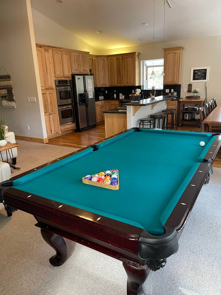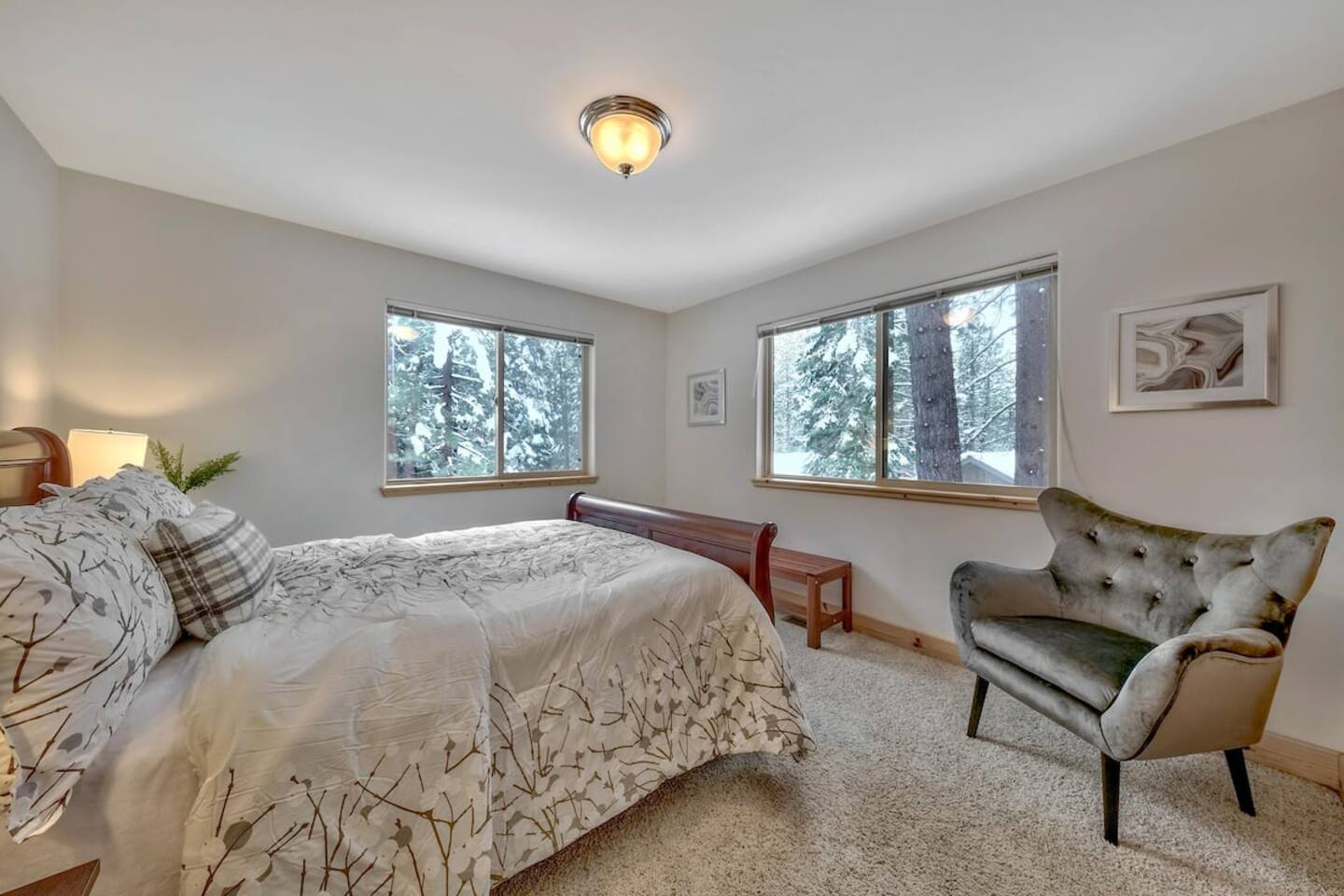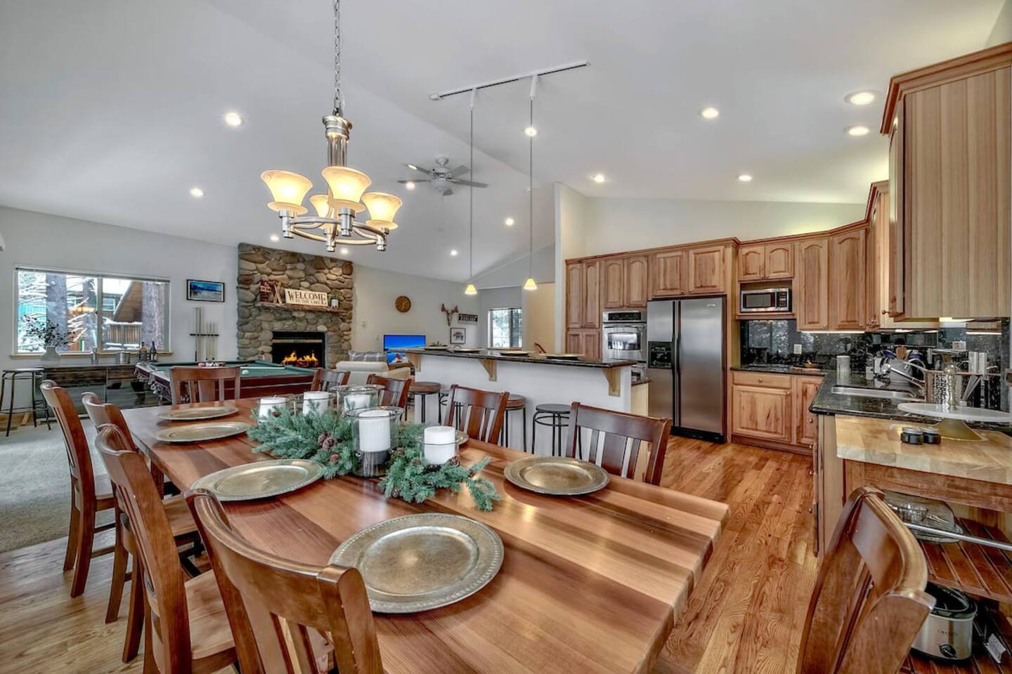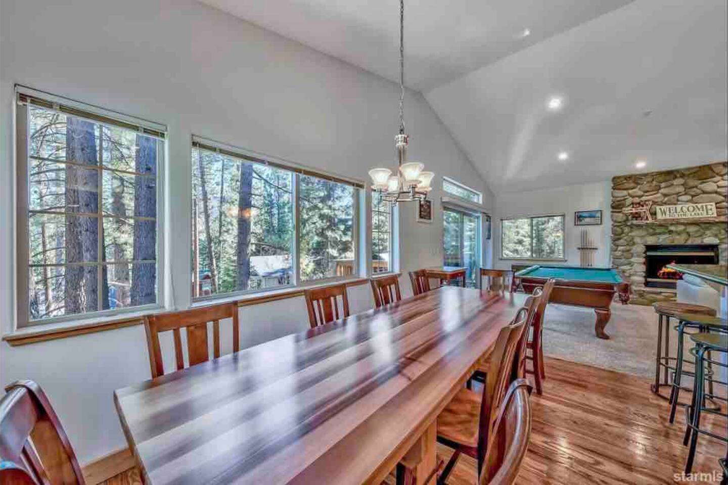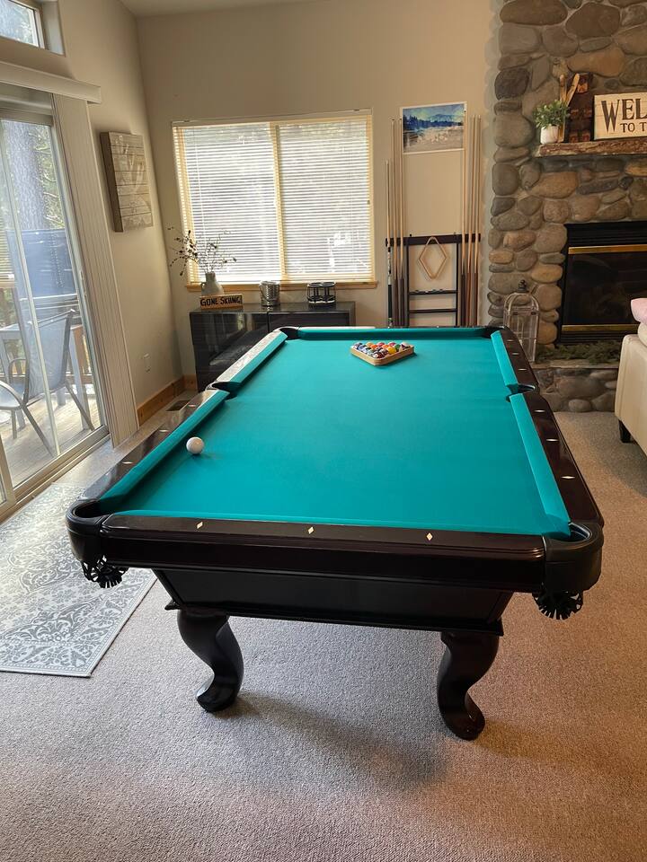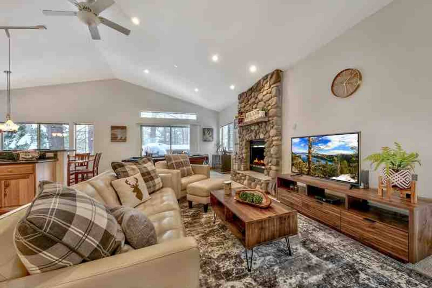 🏔 Welcome to Crystal Manor – Your Modern Mountain Retreat This spacious and beautifully designed Tahoe home is perfect for families or groups seeking comfort, entertainment, and a touch of luxury in the mountains. 🛋️ Living & Lounge Spaces Main living room features soaring ceilings, a cozy built-in gas fireplace, and a full-size pool table—perfect for game nights or relaxing after a day outdoors Downstairs offers a second living area with another gas fireplace, wet bar, and access to a private deck—ideal for second families or extra space to spread out 🍽️ Kitchen & Dining Chef-ready kitchen with granite countertops, stainless steel appliances, and a large island with bar seating Fully stocked with all cookware, dishware, and tools needed for memorable group meals Open-concept layout makes cooking and entertaining easy 🛏 Bedrooms & Sleeping Arrangements (Sleeps 8 max, not including kids under 6) Upstairs: Primary Suite: King bed + twin trundle (2 twins), private deck, en-suite bath with tub Bedroom 2: King bed Bathroom: Full bath in hall Downstairs: Bedroom 3: Queen bed Bedroom 4: Queen bed Common area: Queen pullout sleeper in the lower living room Bathroom: Full shared bath Laundry area with washer & dryer 🌲 Home Features BBQ grill (propane) for outdoor meals HD Smart TVs with Netflix, Amazon Prime & Hulu Ready High-speed internet Central heating and two fireplaces (no A/C) Washer and dryer for guest use Electric car charging outlet (220V) in the garage Garage parking for 2 cars, plus 2 driveway spaces (max 4 cars on property; no street parking allowed) ✨ Other Details No pets allowed Cleaning fee includes a starter kit of essentials: shampoo, soap, dish detergent, toilet paper, paper towels (laundry detergent not included) Whether you’re soaking in the hot tub, grilling on the deck, or enjoying the warmth of the fireplace after a day on the slopes, Crystal Manor offers the perfect balance of relaxation and recreation in a peaceful mountain setting.