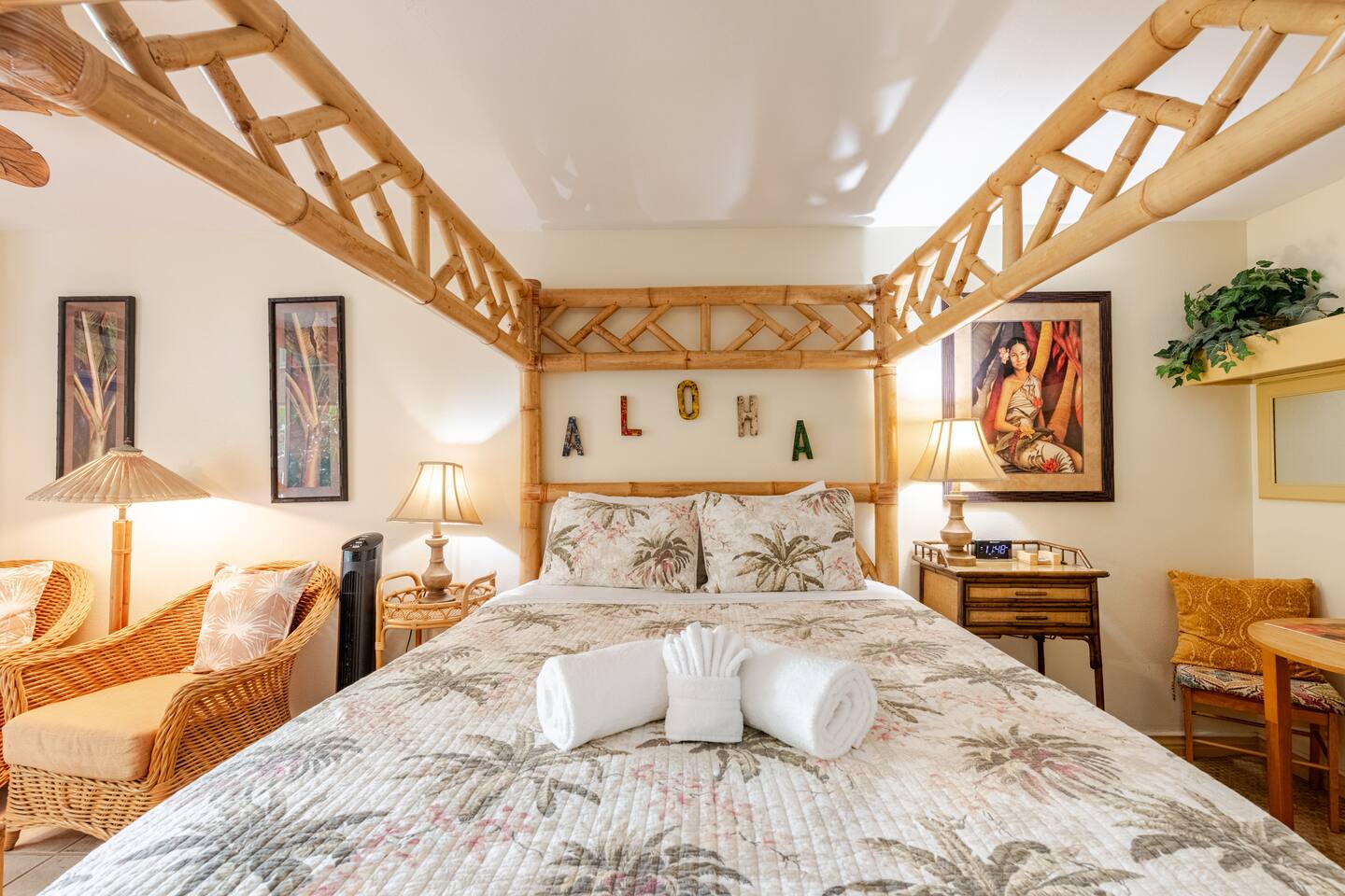 Aloha and E Komo Mai! (Welcome) to Kona Escape! This Hawaiiana inspired 1/bed, 1/bath studio condo with convenience kitchen is beautifully decorated, clean and located on Ali'i Drive in the Village. It is across the street from Kailua Bay and walking distance to restaurants, shops, churches, Kailua Pier, night life, beaches and ocean activities. There is also a large Farmers Market nearby. We are across the street from IronMan Swim Start/Finish line.