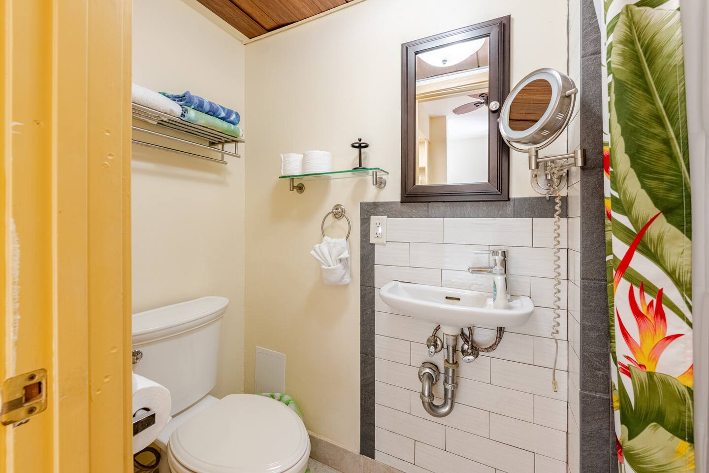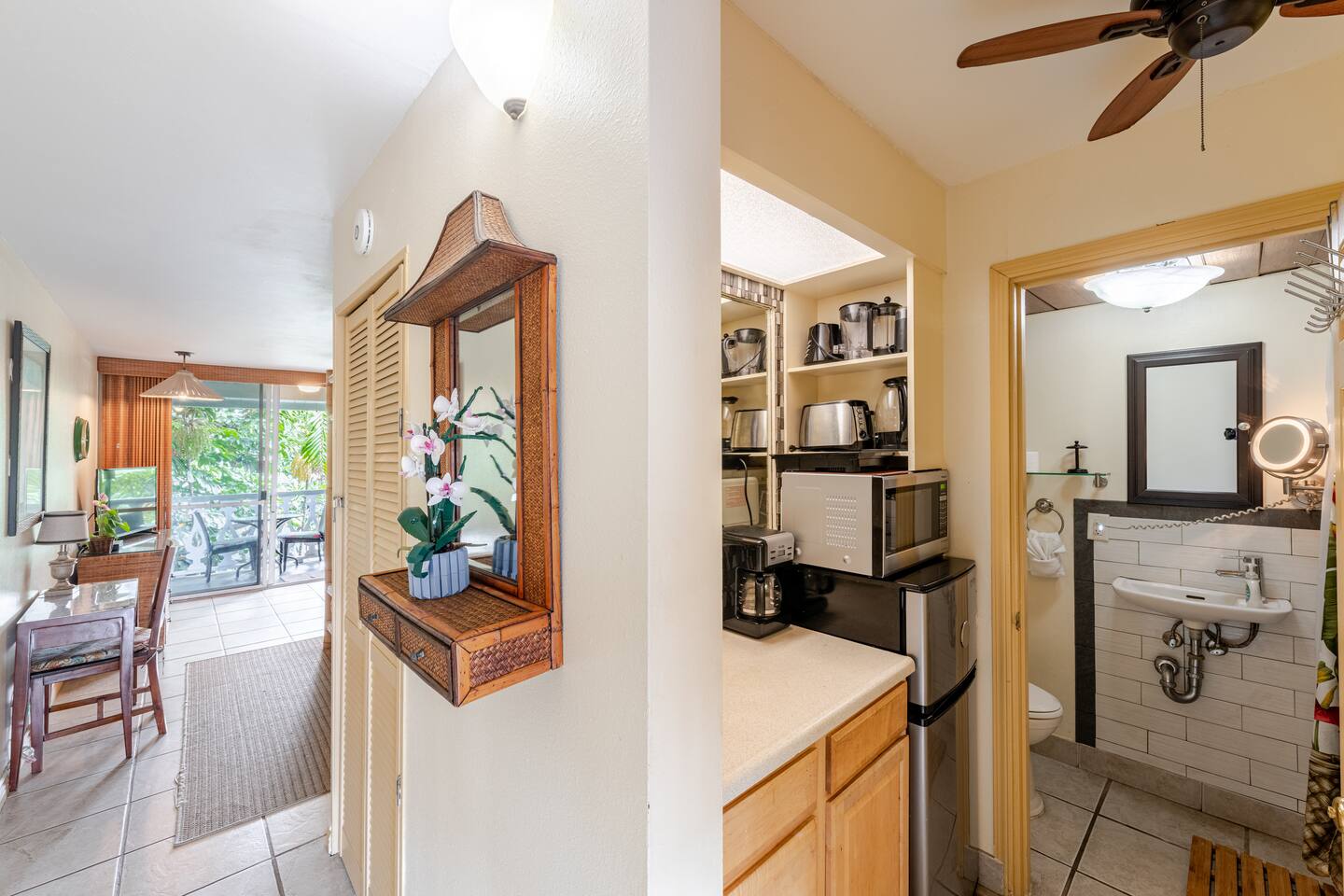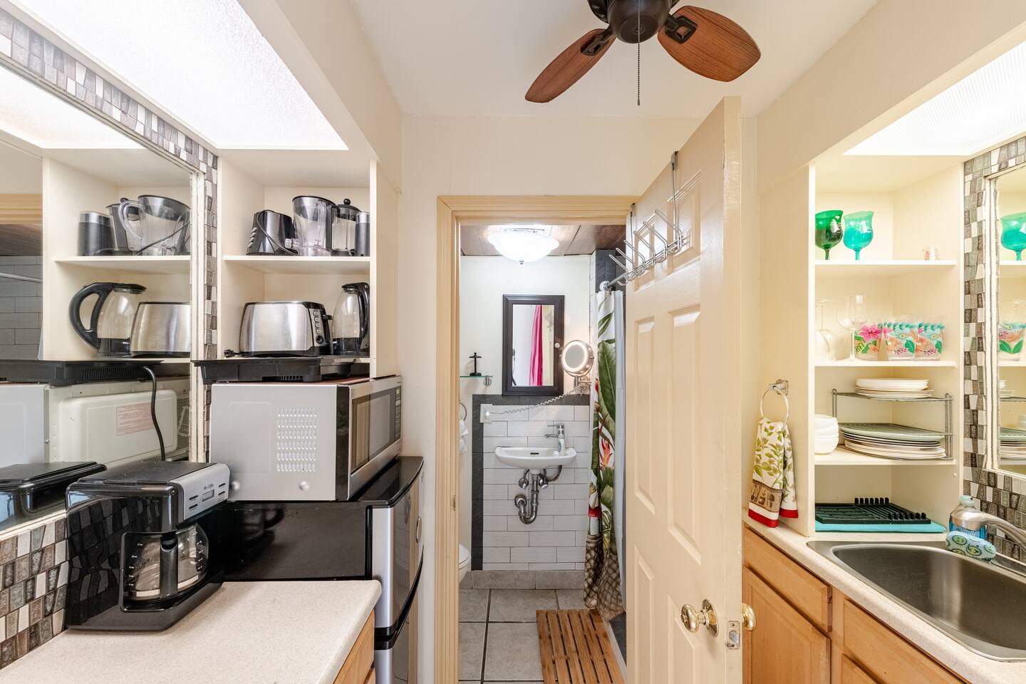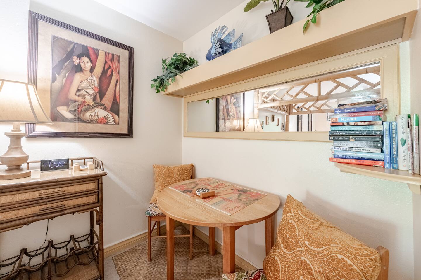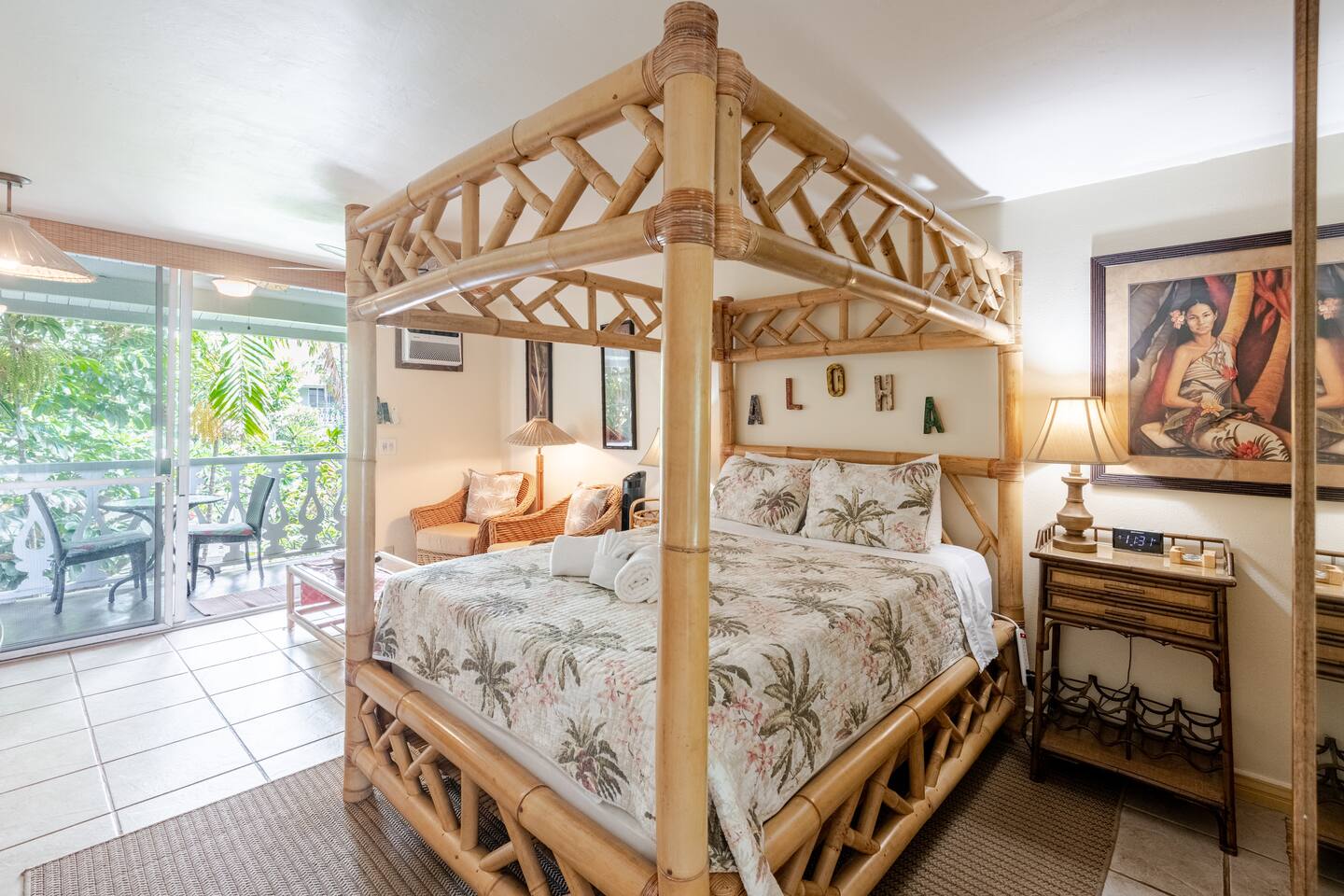 Upon entering you will be greeted by a beautifully decorated room in the vintage Hawaiiana Style. A comfortable and elegant Queen size Elephant Bamboo bed draws attention. A sitting area with two rattan chairs, coffee table, chest of drawers and a flat screen TV is the perfect place to kick back and relax after a fun day at the beach. There is a dinette set for dining and a desk with chair for writing those postcards to loved ones back home (or emailing them:). Also, there is a lovely lanai set for enjoying that morning coffee or evening glass of wine. The art and decor are reminiscent of Vintage Hawaii. The condo is on the third floor (no elevator) in the Lanai Building and is not handicap accessible. 350 sf. studio with kitchenette (microwave, induction cook plate, mini-fridge, coffee maker, blender, rice cooker, toaster, plates, cups, glasses, utensils. There is a lovely and private lanai with a peek-a-boo ocean view of Kailua Bay. We have a beautiful tile shower and a dedicated sink, medicine cabinet with mirror and lighted make-up mirror with 5x magnification in the bathroom. The ceiling is hand textured and there are 3 ceiling fans and an air conditioner for your comfort as it can get warm in Kona! Guest access Guests check in is "hotel style". When you enter the lobby there will be a long white desk on the left side. At the desk there will be a person to check you in and give you a keycard and parking pass*. They will also give you directions to the room. The Keycard gives you access to the pool and jacuzzi area and laundry room. *If the person is not at the desk, there is a black phone to the left of the desk. Pick up the phone and it will connect you to the person on-call. *If checking in after Midnight, contact us and we will make other arrangements for you to obtain the key. Kona Islander Inn's common areas: Pool, spa and gas BBQ area, Lobby, Beautifully landscaped walkways. There are limited parking spaces, available first come first serve. Three flights of stairs to our condo. No elevators in complex. Free secure Wi-Fi with new high speed router. On premises laundry room (coin operated). Other things to note Check in is 4 PM, Check out is 11:00AM. If you need a later checkout or earlier check in, please call us to see if it is available. Please let us know if you will be arriving after midnight as there is not a check in person on duty and we will give you alternate check in information. There are limited parking spaces on the property. If parking stalls are full there are spaces out in the front on the street, across the street and free and paid parking one block over. The person at the front desk can direct you. The unit has one queen bed and sleeps 2 Adults Great honeymoon suite! No extra cost for air conditioning! It is not uncommon to see large bugs or geckos outside and possibly inside of our unit. They are harmless and part of living in tropical environment.