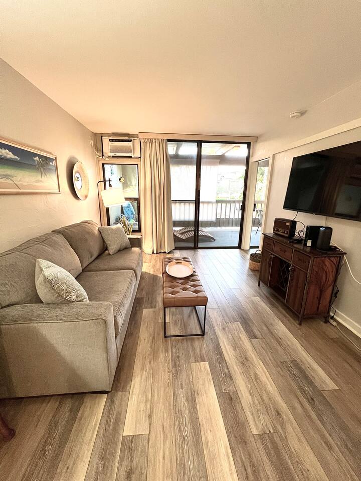 Da Place above Da Poke Shack is a spacious 1 bedroom apartment with a full kitchen and plenty of free parking. From our condo, you can hear the waves and the hustle and bustle from iconic Alii Drive. Amenities at Kona Bali Kai -Pool -Hot Tub -Next to Banyan's Surf Spot -near the Famous Da Poke Shack (open 10am-4pm M-F) -Laundry Facilities in Building -Tide Pools and Lava Beach onsite -Community BBQs and seating -2 Free Parking Spaces Amenities at our Condo: -Full Size Kitchen with Refrigerator and Stove -Queen Bed in Bedroom with dresser and closet -Sofabed (queen) in Living Room -Air Conditioner Wall Unit in Living Room (there is no AC in the bedroom) -Dining Table -Dining Table on the Lanai -Large Smart TV for streaming -Large Lanai -Bathroom with Shower/Tub and Toilet -Double Vanity Sinks in Bathroom - White Noise Machine in Bedroom STVR-2025-001101 TAT-070-607-5136-04 GE-070-607-5136-04
